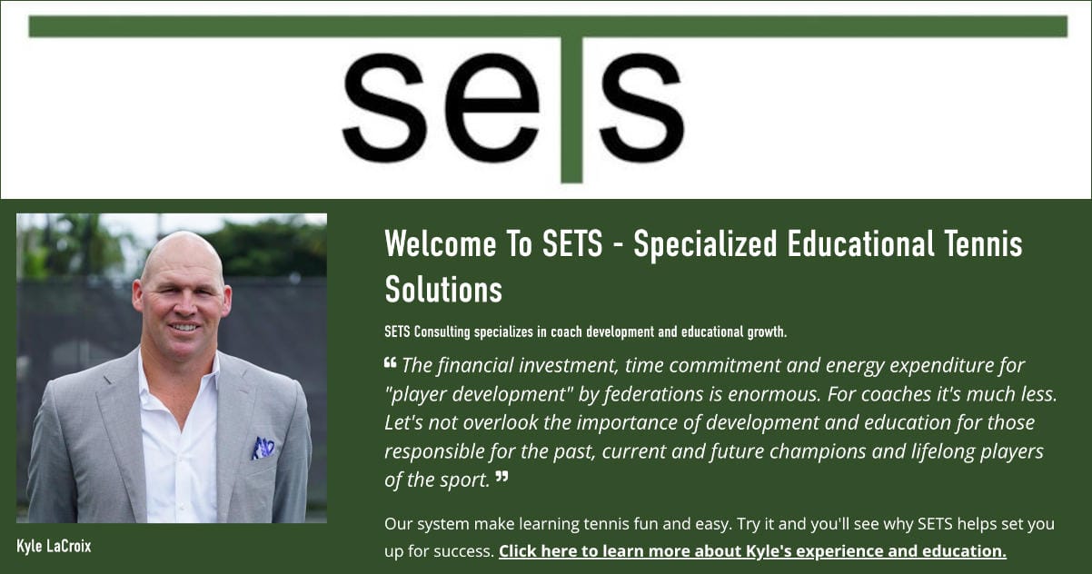 SETS Consulting specializes in racquet sports industry professional development. We provide career-long mentoring and guidance, helping professionals at private clubs, public facilities, and all other areas of the industry. We excel in helping directors and coaches maximize their talents, strengthen their current skillset, and introduce new concepts to help our clients improve as industry players and people. Backed by over 40 years of business and tennis management experience, founder and CEO Kyle LaCroix and his team of experts are recognized as thought leaders in their field. At SETS, we believe there is a better way to get ahead in our industry, and it’s not just working harder; it's working smarter and with the right team. Quality, expertise, and passion are the core of what drives our business. We look forward to setting our clients up for success, one day, one ball, one shot at a time.